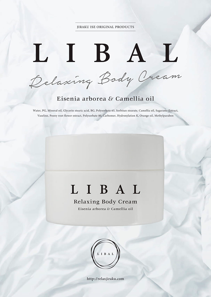 | アピールポイント | 伊勢で年間5,000人が利用し多くのリピーターに支持される「リラクゼーションジラク」が実際の施術でも使用している、高い保湿力と美肌効果をもたらす三重県産天然素材を贅沢に使用した体全体に使えるボディクリームです。 お肌に潤いを与える伊勢志摩産の海藻「サガラメ」や尾鷲産の「椿油」を贅沢に使用し、奥伊勢産のクロモジ精油をブレンドしたオリジナルエッセンシャルオイル「神凛(ShinRin)」を用いています。 「神凛(ShinRin)」は、伊勢の神聖な森に包まれるような奥深い和の趣きを感じる凛とした真っすぐな香りが特長で、深呼吸したくなるようなイメージが心身を鎮め、だんだんと静穏な情景をひろげてくれます。 【商品の説明】内容量:80g |